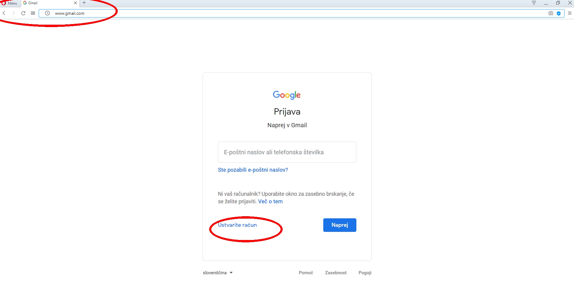 !!! lahko pa pritisnemo tudi SEM in v brskalniku se bo odprl nov zavihek www.gmail.com !!!