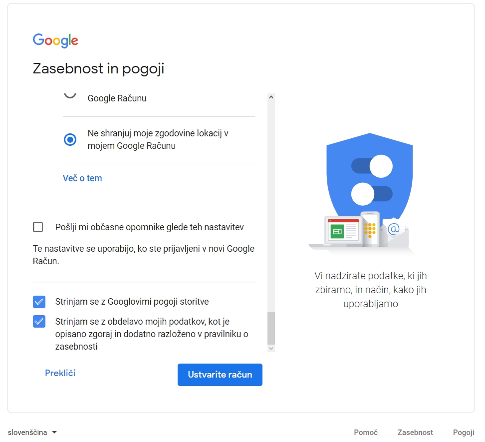 Še odkljukamo, da se strinjamo s pogoji uporabi