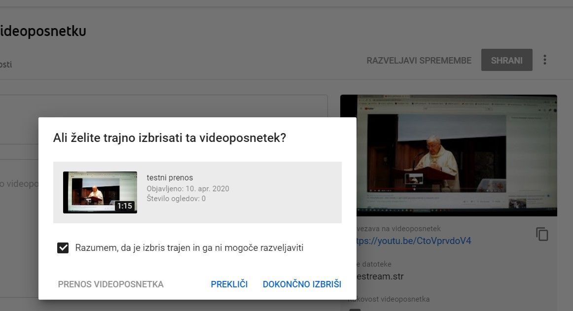 Predhodno moramo seveda imeti svoj YouTube kanal, kako ga ustvariti smo