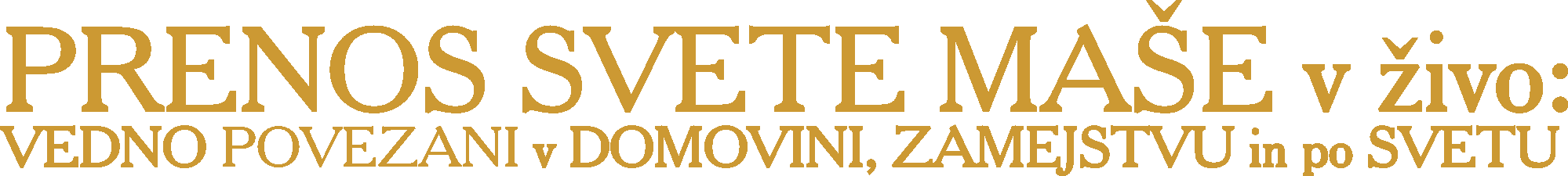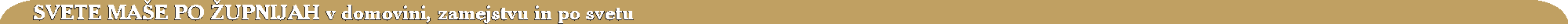 SVETA MAŠA ( 10:00) LJUBLJANA – CENTER: Marijino Oznanjenje19:0010:0019:00 Sveti Jakob7:308:0018:007:0018:30Sveti Peter; LJUBLJANA – MOSTE:Dol pri Ljubljani10:0019:00ČrnučeKašelj-Zalog MostePolje8:00Sostro Sveta Helena - Dolsko Sveti Jakob ob Savi Sveti Križ 10:00 Štepanja VasZadobrova LJUBLJANA – ŠENTVID:Dravlje8:3010:00Koseze 6:307:00 18:3019:007:308:0018:3019:007:308:009:3010:00 KRANJ:Kranj - Kokrica Kranj - PrimskovoKranj - Zlato Polje Sveti Peter Naklo; RADOVLJICA:Bohinjska Bistrica Breznica Koroška Bela - Jesenice Kranjska Gora Radovljica Rateče Srednja Vas v BohinjuZasip; ŠENČUR:Cerklje na GorenjskemVelesovo; ŠKOFJA LOKA:Škofja Loka BukovščicaJavorje nad Škofjo Loko Leskovica Poljane nad Škofjo LokoRetečeSelca Stara Loka Sveti Duh pri Škofji Loki Sveti LenartTrata - Gorenja Vas Žiri TRŽIČ:Duplje Goriče KrižeTrstenik Tržič Bistrica DOMŽALE: Blagovica, BrdoDOB18:00 (8:00)6:308:0010:00DomžaleVirZlato Polje KAMNIK: HomecKamnikMengešMoravčeStranje Šmarca DuplicaŠmartno v Tuhinju LITIJA: LitijaPolšnikSavaŠmartno pri LitijiZasavska Sveta Gora; ZAGORJE: ČemšenikDobovecIzlake Kisovec Zagorje ob Savi CERKNICA:Begunje pri Cerknici BlokeCerknicaRakekStari Trg pri LožuSv. TrojicaSv. Vid GROSUPLJE:GrosupljeIvančna Gorica10:00Polica StičnaŠentvid pri StičniŠkofljicaŠt. Jurij RIBNICA:Dobrepolje - VidemRibnicaSodražica; VRHNIKA:Dolnji LogatecHorjulHotedršicaRovteŠentjošt nad HorjulomVrh Svetih Treh Kraljev; KOPER: Koper - Marijino vnebovzetjeKoper - Sveta AnaKoper - Sveti MarkoSveti Anton; DEKANI: Ankaran18:3019:009:30KoštabonaKrkavčePredloka; IDRIJA–CERKNO: CerknoIdrija KRAS: Hrpelje - KozinaSežanaTomajVrabče; POSTOJNA: PostojnaKošanaPivkaŠmihel; VIPAVA: ČrničeKamnjeLozicePodragaPodnanosŠturjeVipava18:0010:00; ILIRSKA BISTRICA KOBARID NOVA GORICAKristus Odrešenik ŠEMPETER TOLMIN NOVO MESTO: ČrmošnjiceNovo Mesto - KapiteljNovo Mesto - Sv. LenartNovo Mesto - ŠmihelStopičeŠmarjetaVavta Vas ČRNOMELJ: ČrnomeljDragatušMetlikaSemičSuhor; KOČEVJE: Fara pri KočevjuKočevjeMozelj LESKOVEC: Leskovec pri Krškem, Šentjernej; TREBNJE: BoštanjČatež - Zaplaz10:0016:0018:00Dole pri Litiji Mirna8:409:0010:1010:30ŠentrupertTrebnje Veliki Gaber ŽUŽEMBERK: Krka - MuljavaZagradec MARIBOR: Maribor - Stolna župnijaMaribor - KošakiMaribor - Sveta Marija Maribor - Sveti Janez BoskoMaribor - Sveti Jožef Maribor - Unizup Lovrenc na Pohorju Sveta Barbara v Slovenskih Goricah; DRAVOGRAD–MEŽIŠKA DOLINA: DravogradČrna na KoroškemJavorjeKoprivnaLibelice PrevaljeRavne na Koroškem DRAVSKO POLJE: HočeSlivnica pri Mariboru JARENINA: Šentilj v Slovenskih GoricahSveti Jakob v Slovenskih Goricah LENART V SLOVENSKIH GORICAH: Marija SnežnaSveti Anton v Slovenskih Goricah Sveta Trojica v Slovenskih Goricah Sveti Jurij v Slovenskih Goricah Sveti Lenart v Slovenskih GoricahSveti Rupert v Slovenskih Goricah PTUJ: HajdinaKidričevo Ptuj - sv. OžbaltSveti Vid pri Ptuju RADLJE–VUZENICA: Kapla na KozjakuRadlje ob Dravi SLOVENSKA BISTRICA: Poljčane; SLOVENSKE KONJICE: Slovenske KonjiceŠpitaličZrečeŽiče STARI TRG: PASTIR PamečeSeleSlovenj GradecStari Trg VELIKA NEDELJA: Sveti Tomaž ZAVRČ: Sveti Andraž v Halozah CELJE–NOVA CERKEV: Stolna župnijaSveta Cecilijabl. Anton Martin SlomšekTeharje; Vitanje; GORNJI GRAD–ŠALEŠKA DOLINA:Gornji GradMozirje18:008:0010:00Nova Štifta pri Gornjem GraduŠmihel nad Mozirjem; Šentjanž na Vinski GoriVelenje - sv. MartinVelenje - bl. Anton Martin Slomšek KOZJE–ROGATEC–ŠMARJE PRI JELŠAH:Sveti Peter pod Svetimi Gorami; Rogaška Slatina;Ponikva17:3018:009:3010:00; Šentjur pri Celju18:308:006:308:0010:00Šmarje pri Jelšah; LAŠKO–VIDEM OB SAVI: LaškoSveti Miklavž nad LaškimTrbovlje; BizeljskoKapele pri BrežicahKrško - Videm ob SaviSenovo; ŽALEC–BRASLOVČE: PetrovčeŽalec;Šmartno ob Paki MURSKA SOBOTA: Murska Sobota LENDAVA: LendavaTurnišče; LJUTOMER: LjutomerVeržej AVSTRIJA: KRŠKA ŠKOFIJA: Dobrla Vas8:309:00Kapla ob Dravi10:30Št. Vid v Podjuni ITALIJA: GORIŠKA NADŠKOFIJA: Štandrež; TRŽAŠKA ŠKOFIJA: DoberdobDolinaOpčineRepentabor; SLOVENSKA KATOLIŠKA MISIJA: NEMČIJA: MünchenStuttgart; ŠVICA: Švica-Lihtenštajn-Predarlska SLOVENCI PO SVETU: ARGENTINA: Buenos AiresLanus AVSTRALIJA: Melbourne KANADA: HamiltonToronto13:0013:00 ZDA - Chicago: Lemont,- Ohio: Slovenska PristavaMarija Vnebovzetasv. Vid