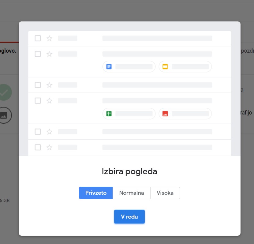 Izbira poglede - za naše trenutne potrebe tehnične podpore izberemo Privzeto in potrdimo z V redu