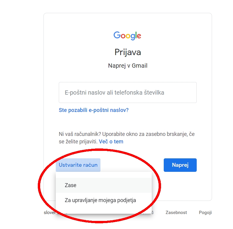 !!! lahko pa pritisnemo tudi SEM in v brskalniku se bo odprl nov zavihek www.gmail.com !!!