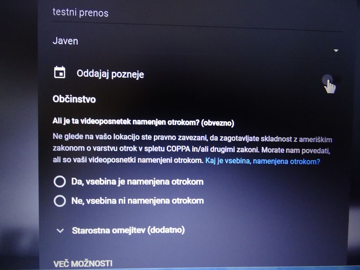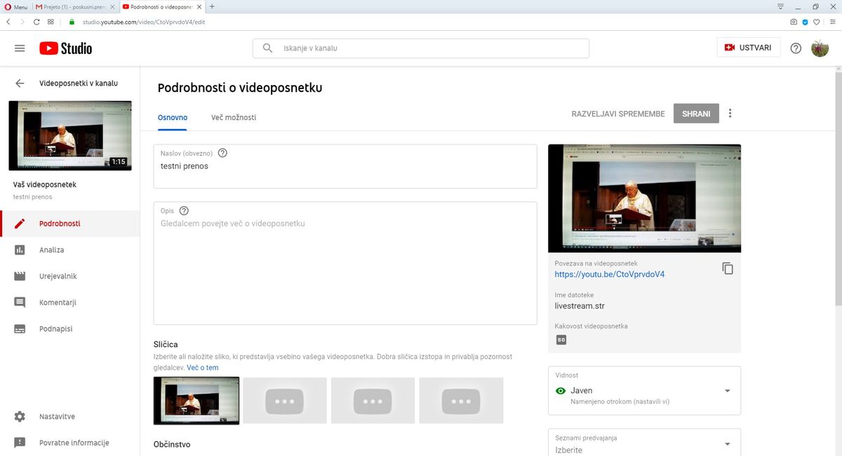 vpišemo ime posnetka / ali je objava