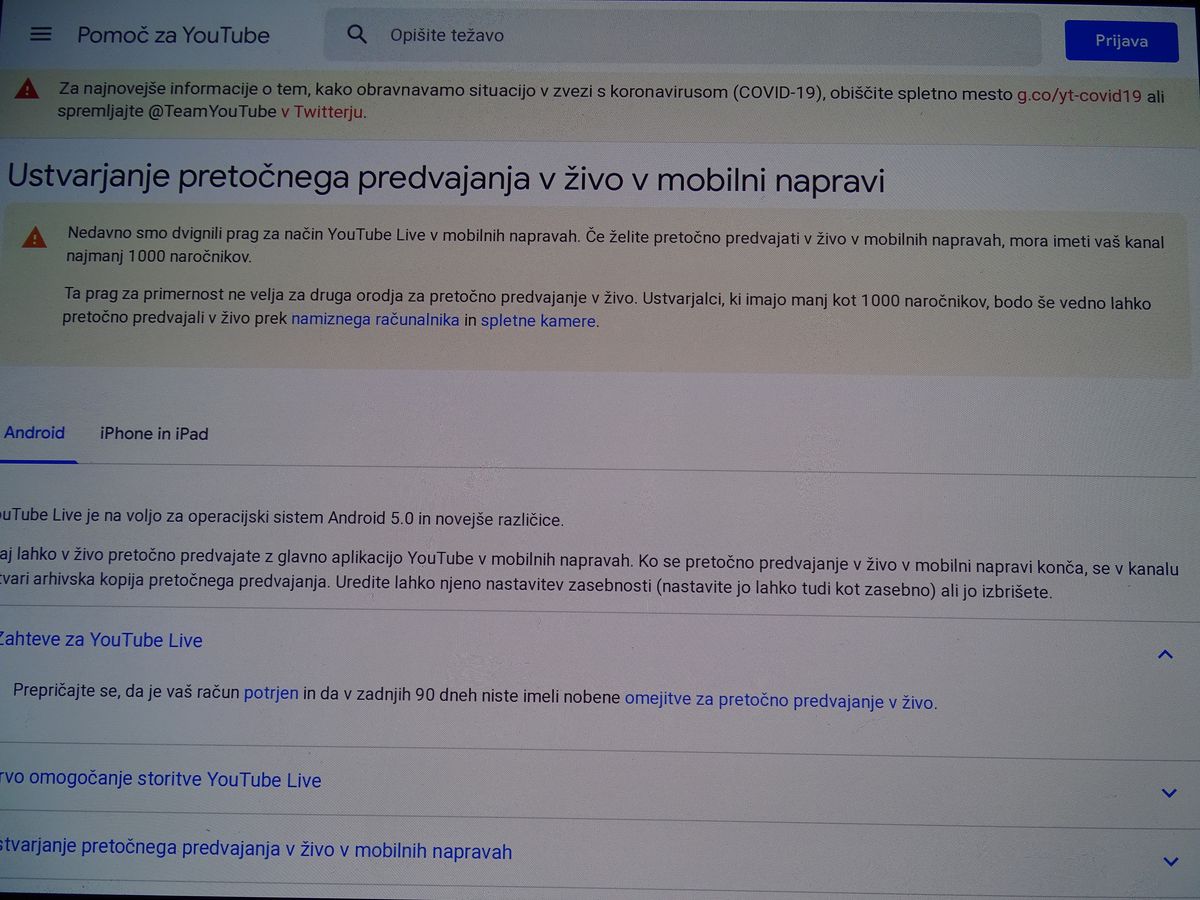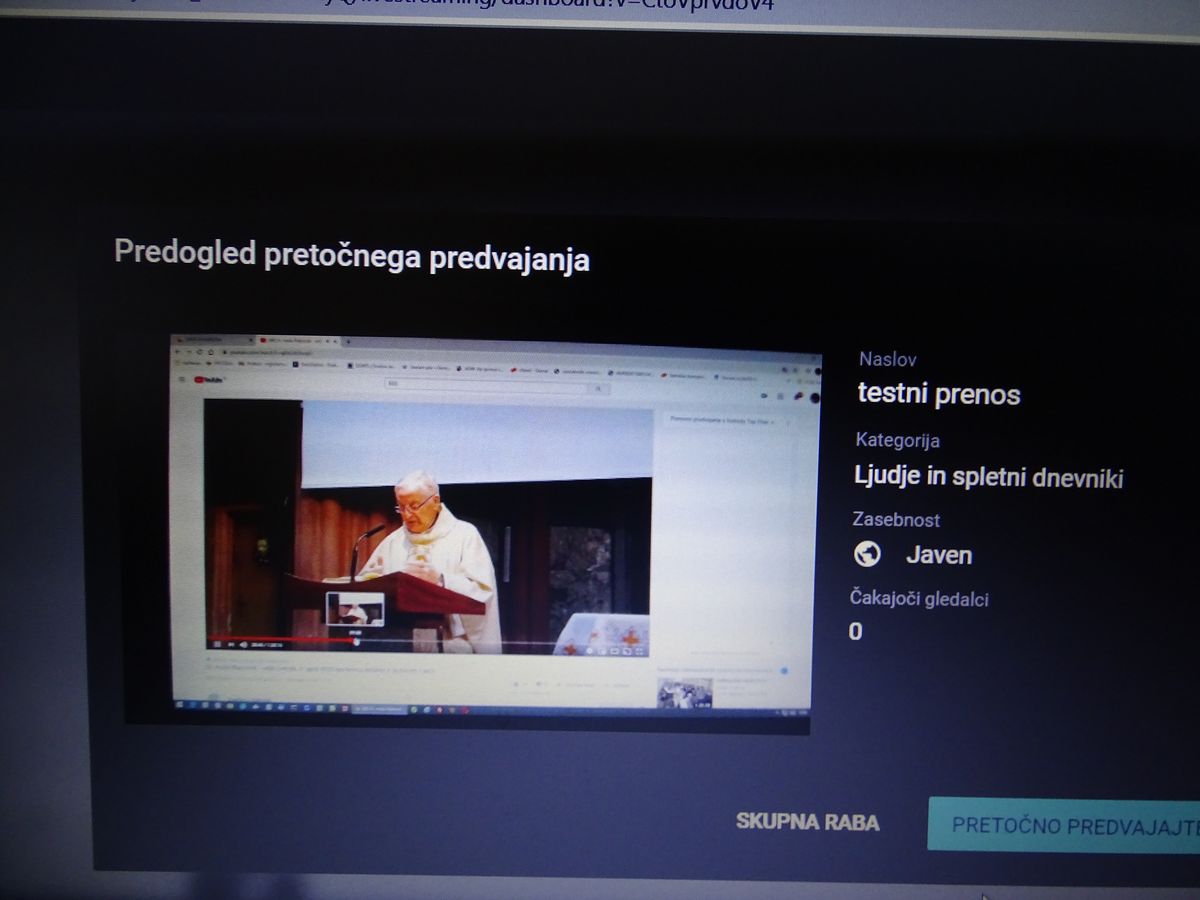 - od trenutka ko ustvarimo nov kanal, do pričetka predvajanja v živo mora